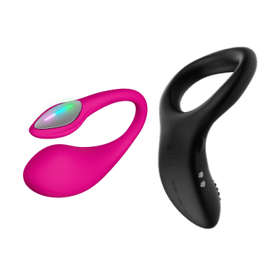 Both partners wear a vibrator during sex. Lush 4 for her G-spot, Diamo cock ring for him. Both provide shared stimulation.