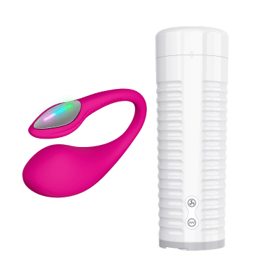 G-spot vibrator + male masturbator set. Interactive couples toys for long-distance play.