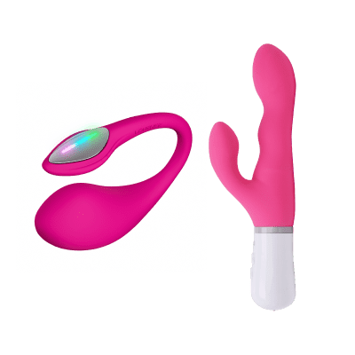 Two different approaches to G-spot stimulation: the wearable Lush 4 egg and the dual-stimulation Nora rabbit vibrator.